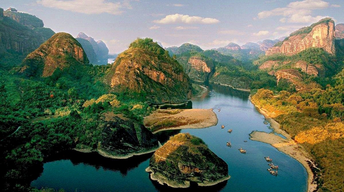 《寻梦龙虎山》,采用全新的“行进式”观演方式,把演出和山水有机结合起来,从视、听、触、嗅、味、感觉等六个方面入手,通过完全真实的场景体验,让观众在这碧水丹山之中乘舟行进观演的同时,全身心地融入其中,充分感受这身历其境地“仙境”。