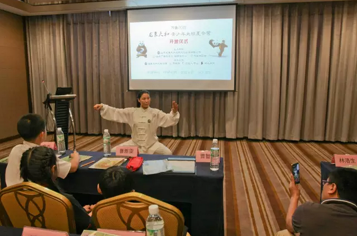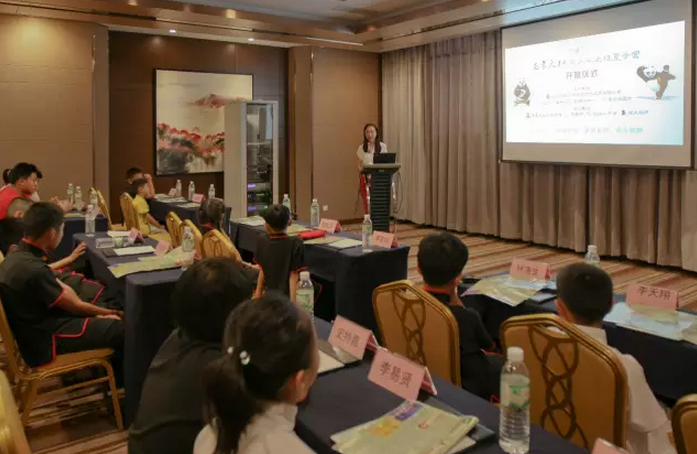 虽然本次夏令营招生工作较晚(6月底开始招生),很多小朋友和家长们都早已做好了假期学习和游玩规划的前提下,依然报名了来自省内和全国其它地区30多位小朋友,其中有的是退掉了其他的学习班和夏令营来参加此次太极夏令营,这让本次夏令营的所有工作人员倍受鼓舞。。。。。。开营仪式在精彩的节目和轻松愉快的氛围中顺利进行。营员代表曹雅雯上台发言和王秋桐小朋友带来的笛子演奏,赢得了台下的热烈掌声。