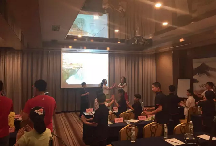 龙象天和太极会馆的两位太极老师表演的太极套路,更是满堂喝彩,让在座的孩子们摩拳擦掌跃跃欲试。最后,参加开营仪式的全体人员在国学老师杨老师的带领下,所有在场的小朋友和家长们一起学习手语歌舞《生命之河》,让全场深深地感悟了父母无私无尽的爱的伟大,更是给孩子们上了一节别开生面的“孝文化”课。最后,主持人在热烈的高潮气氛中宣布本次夏令营正式开营!