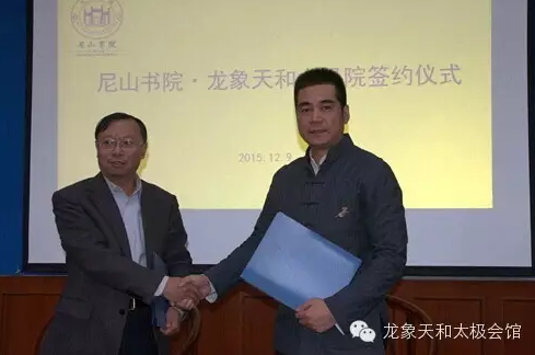 此次龙象天和太极院与尼山书院在全省范围内组织公益太极拳培训的合作,不仅是双方共同响应国家大力提倡和支持传统文化和体育事业发展的号召,回报社会,更是两个“中国制造”的原创文化品牌联手发力,共同构建多层次文化传承体系,使中国传统文化在创新中得到传承、在创新中走向世界!