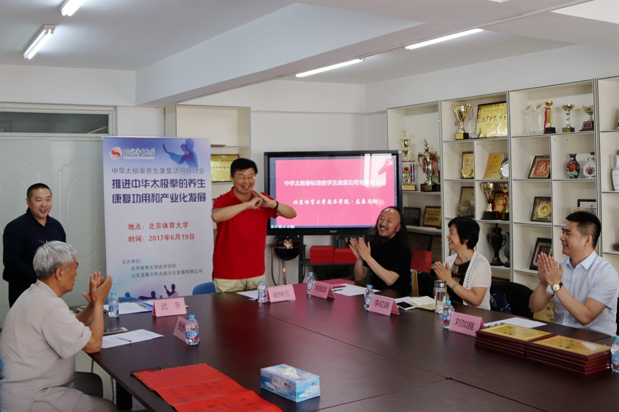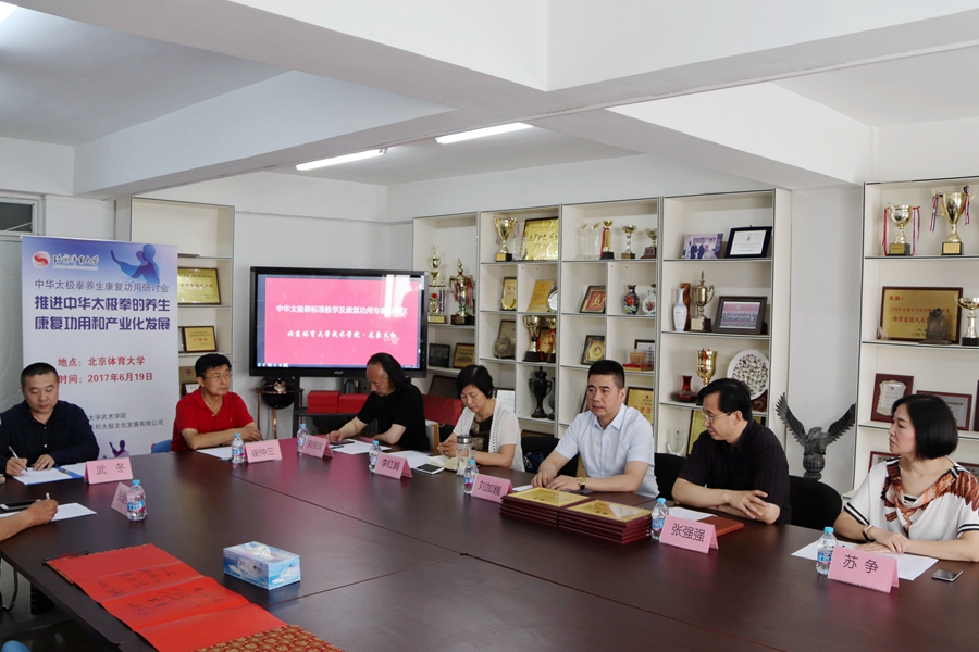 6月19日,北京体育大学武术学院、龙象天和《中国太极拳标准教学及养生康复功用研究组会议》,在北京体育大学教研楼圆满举行!会议由北京体育大学武术学院武冬教授主持,北京体育大学武术学院张强强院长与龙象天和刘加巍董事长分别就此次双方共同设立研究组的立意和目标作了精彩发言,同时对专家组所有成员的大力支持和积极参与表示感谢!