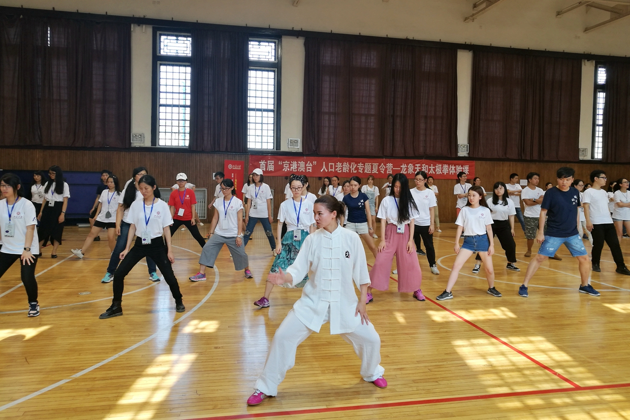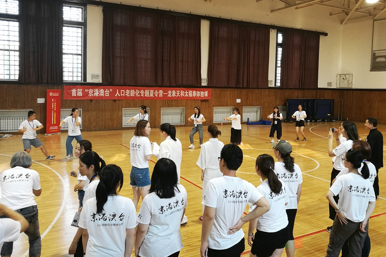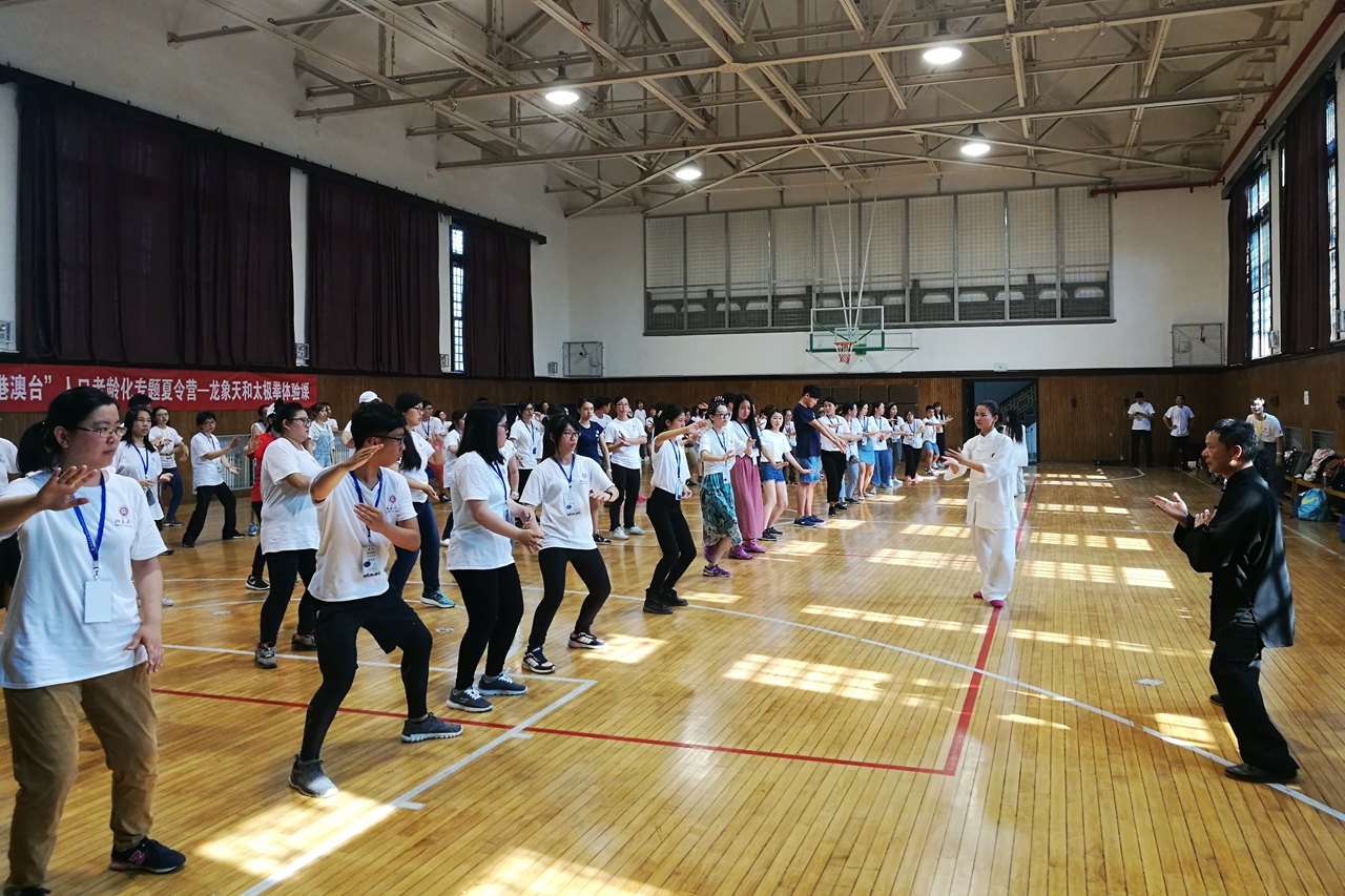 6月30日,北京大学人口研究所、北京大学老年学研究所、北京大学武术中心、龙象天和 联合举行的《首届“京港澳台”人口老龄化专题夏令营-龙象天和太极课》在北大校内热烈进行。夏令营营员来自-北京大学、香港城市大学、香港岭南大学、香港树仁大学、澳门大学、南开科技大学、东海大学、台湾师范大学、成功大学、台湾大学、中正大学等两岸四地的大学生。