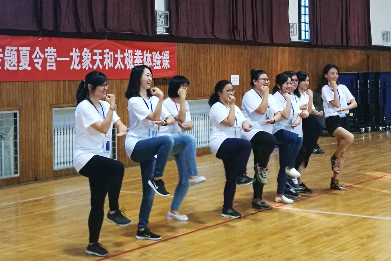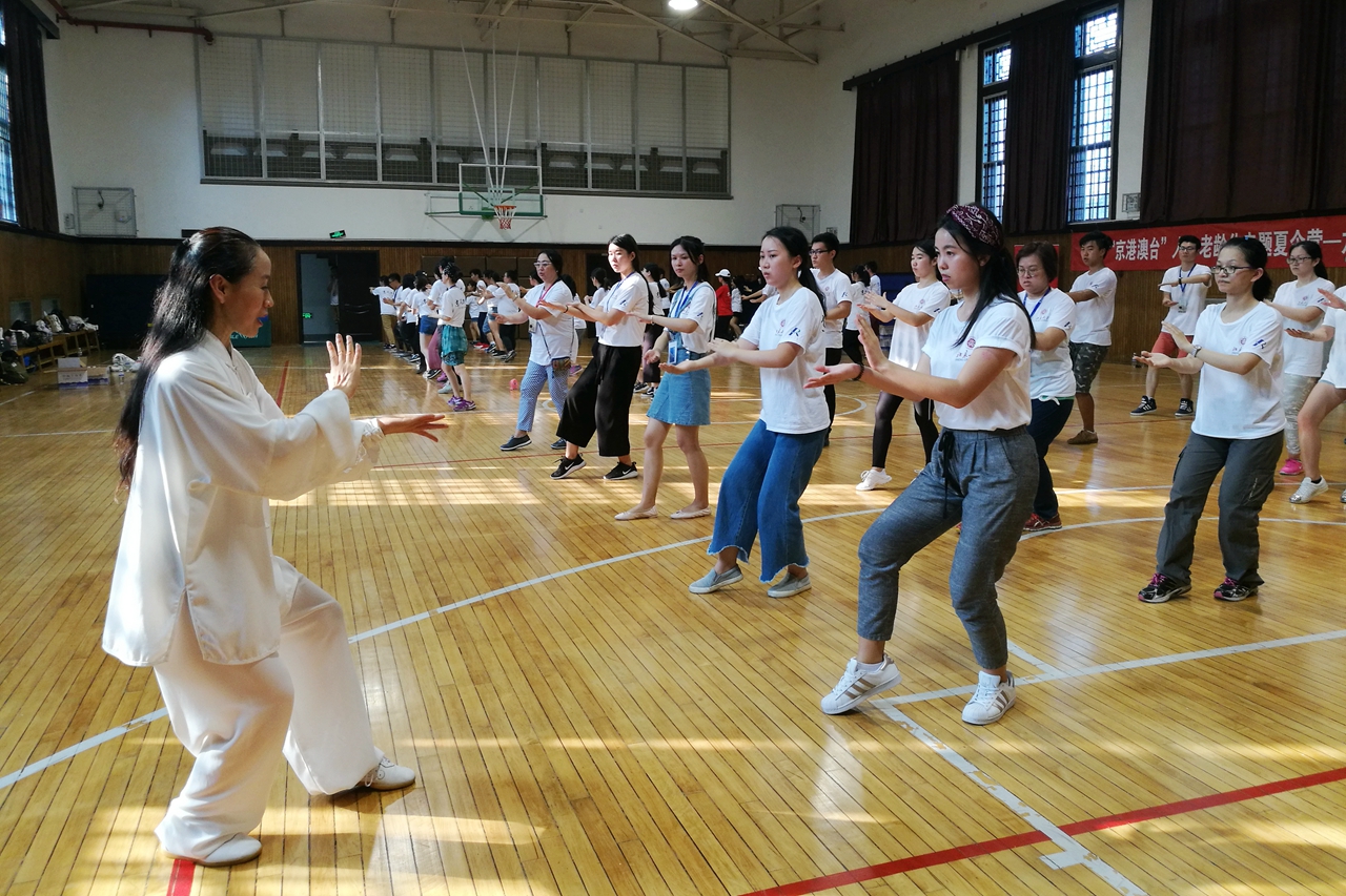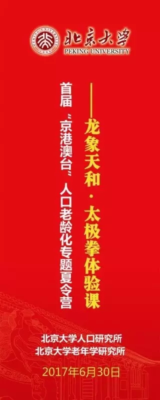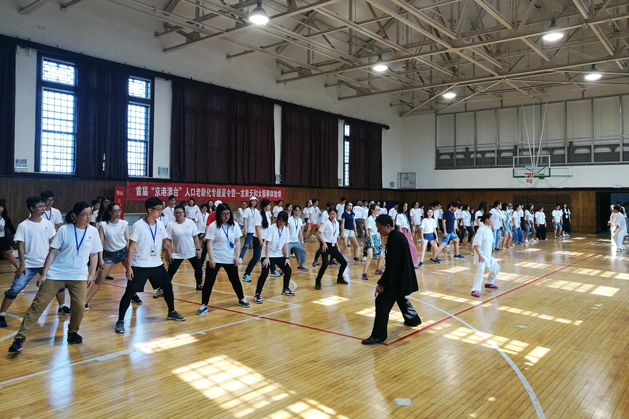 6月30日,北京大学人口研究所、北京大学老年学研究所、北京大学武术中心、龙象天和 联合举行的《首届“京港澳台”人口老龄化专题夏令营-龙象天和太极课》在北大校内热烈进行。夏令营营员来自-北京大学、香港城市大学、香港岭南大学、香港树仁大学、澳门大学、南开科技大学、东海大学、台湾师范大学、成功大学、台湾大学、中正大学等两岸四地的大学生。