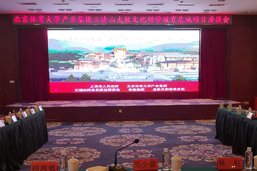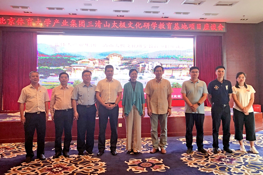 2018年8月14日下午,《北体大三清山太极文化研学教育基地座谈会》在三清山金沙湾假日酒店隆重召开。北京体育大学产业集团总经理张强强、青岛龙象天和体育文化产业有限公司董事长刘加巍、上饶市政府副市长郑少薇、上饶市政府副秘书长顾海敏、三清山风景区管委会书记诸立、三清山风景区管委会副主任郑小芳、金旅集团(三清山文化旅游股份有限公司)董事长吴恒忠、总经理郑忠等参与座谈并发表重要讲话。