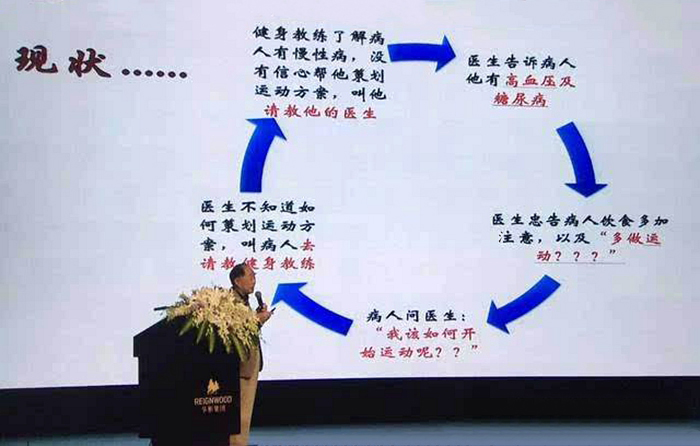 2012年我国引进美国运动医学会“运动是良医”的理念后,提出“体医融合”方针,旨在使临床医生或相关健康从业者能够为患者提供科学正确的运动处方服务。在前期调查统计,我国因不良生活方式所致的亚健康占到70%左右,导致死亡的比例占到总死亡人数的87%,心脑血管病人数达2.9亿人,糖尿病患者有1.14亿人,高血压患者2.7亿人,血脂异常人数超过2亿人,脂肪肝和肥胖人数达到2亿多人。如此恐怖的慢病统计数据,单靠临床药物治疗和没有运动科学介入的简单康复训练是很难达到满意的治疗效果,必须实行“体医融合”,通过运动处方的配合介入,达到提高全民体质健康水平和促进慢病的康复。